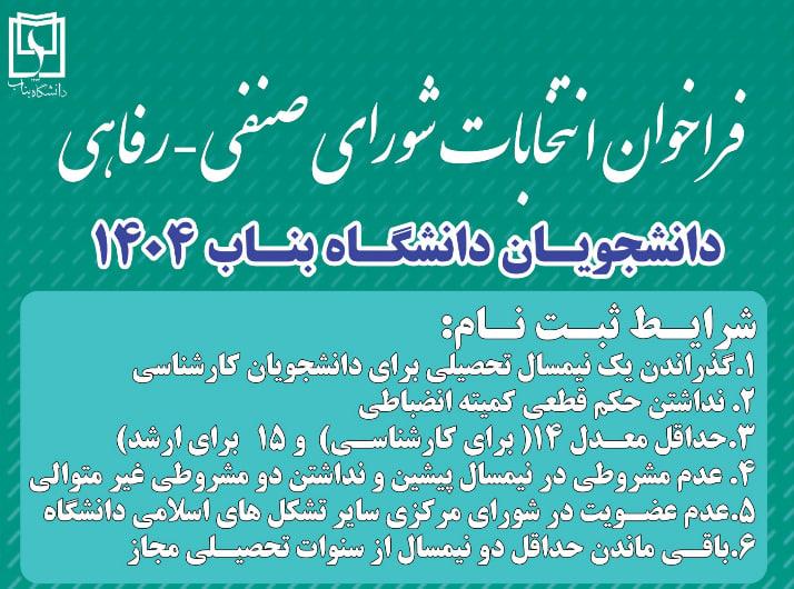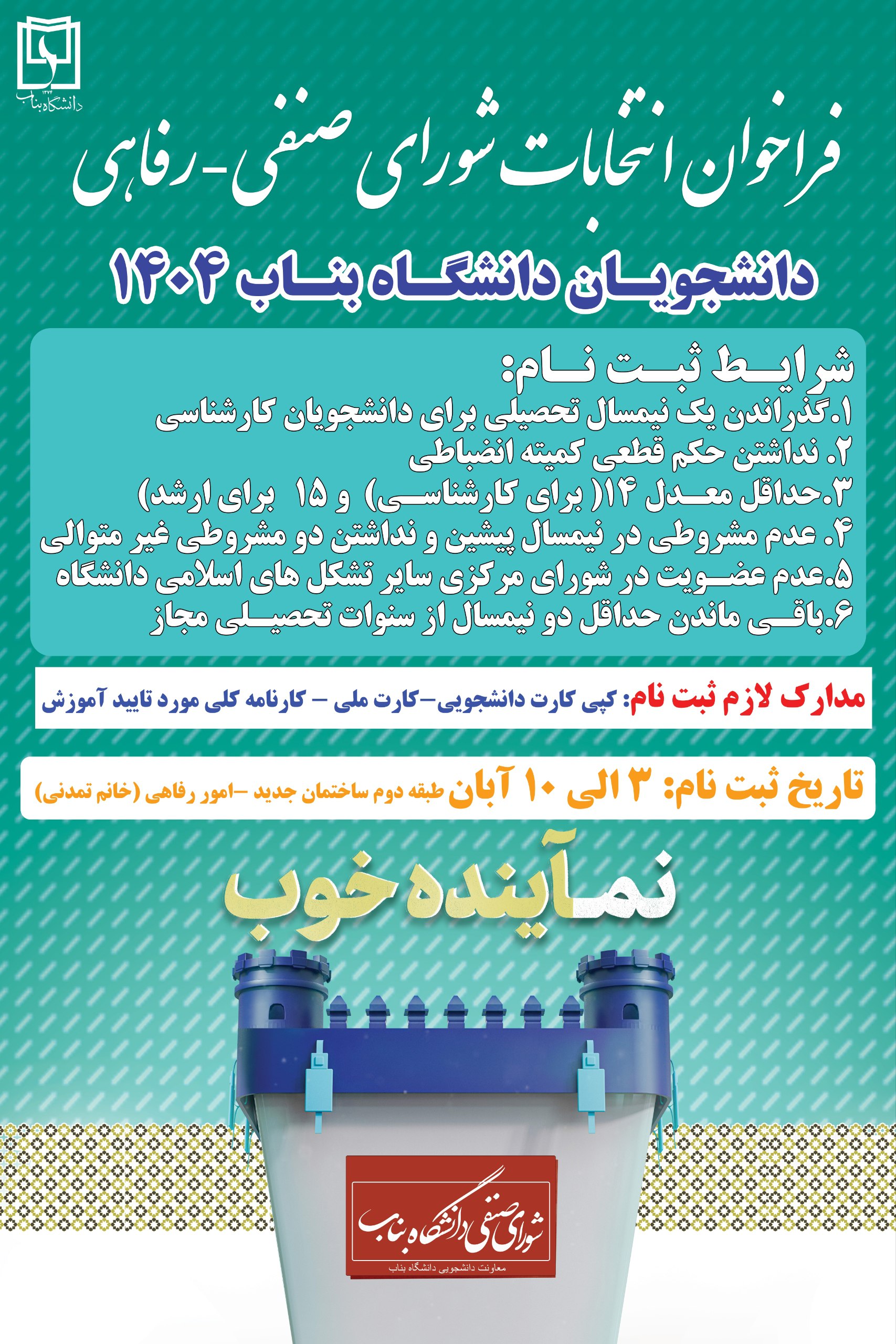 نظر به اجرای آیین نامه شورای صنفی-رفاهی دانشجویان ، ثبت نام متقاضیان شرکت در انتخابات شورای صنفی-رفاهی دانشجویان آغاز شد.