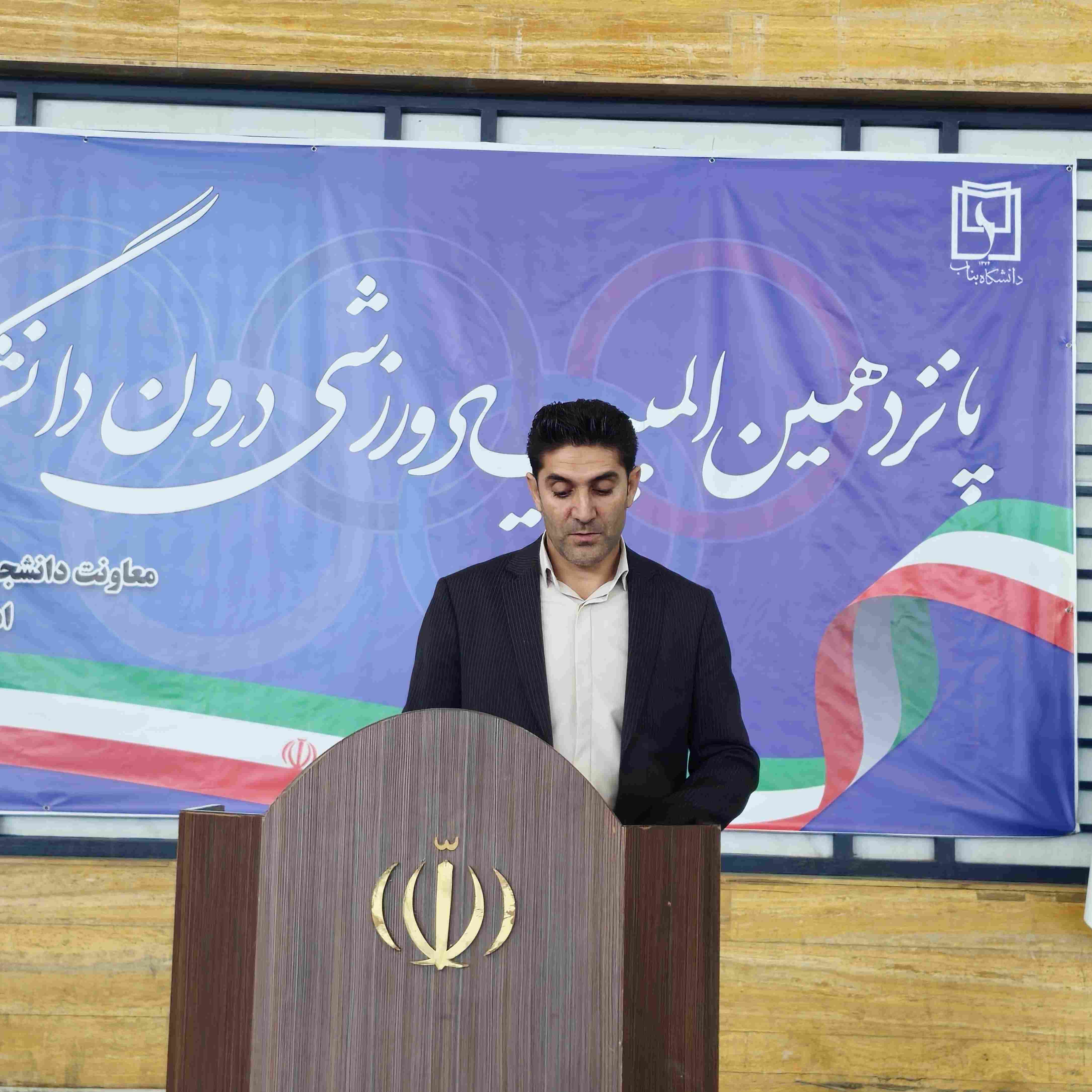 پانزدهمین دوره المپیاد ورزشی دانشجویان دانشگاه بناب با حضور حدود ۳۰۰ دانشجوی دختر و پسر و با رقابت در ۱۵ رشته ورزشی، صبح امروز در سالن ورزشی ولایت این شهرستان افتتاح شد.